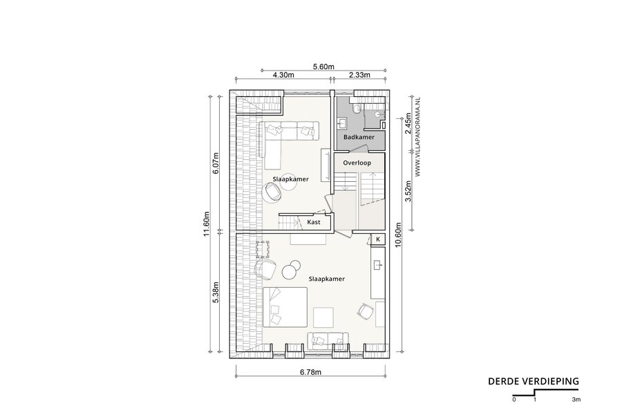 Tussenverdieping en derde verdieping: