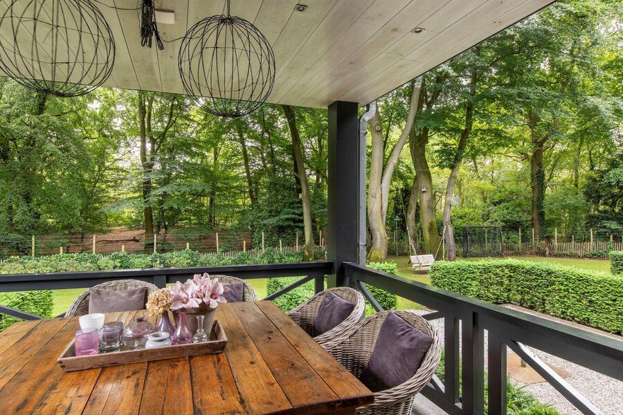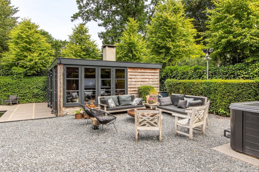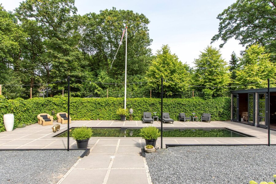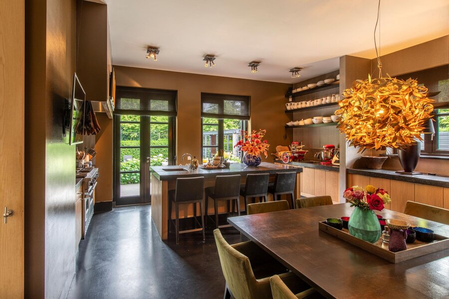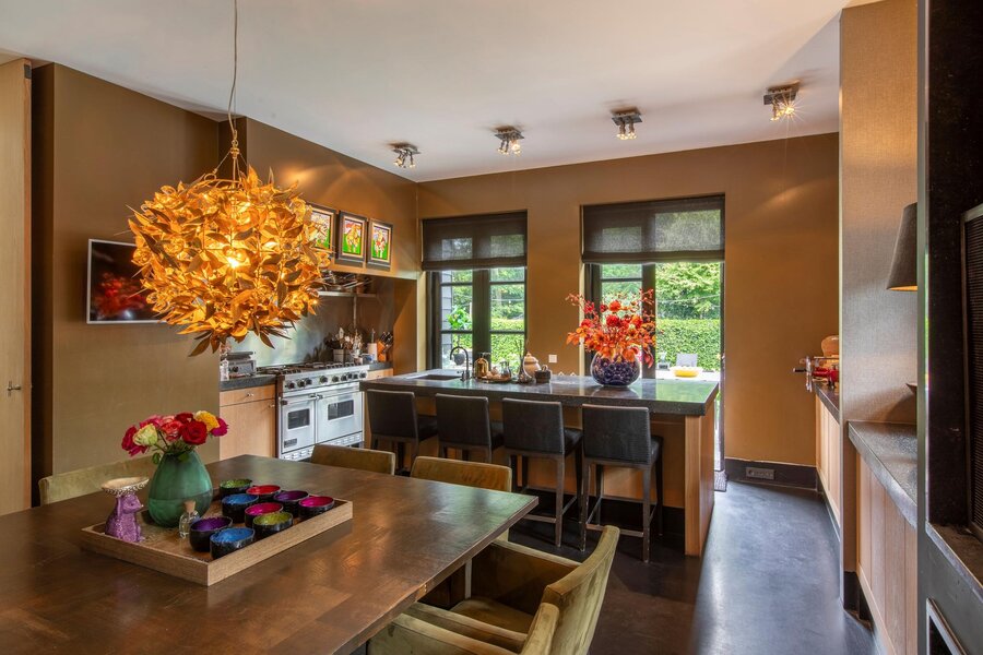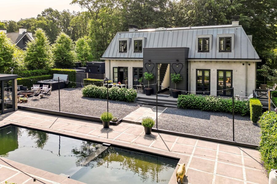 Ruim 450 m² compromisloos woongenot, met twaalf kamers, waarvan zes slaapkamers, vier badkamers, de woonkeuken uit uw dromen en in de tuin, grenzend aan Goois natuurreservaat het Mauvezand, terrassen, een zwembad en een poolhouse.