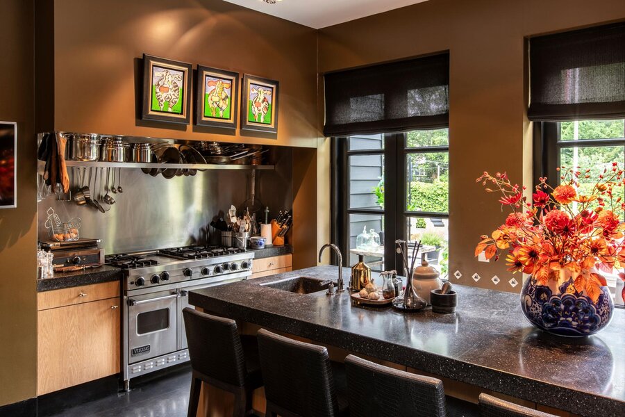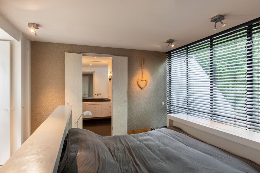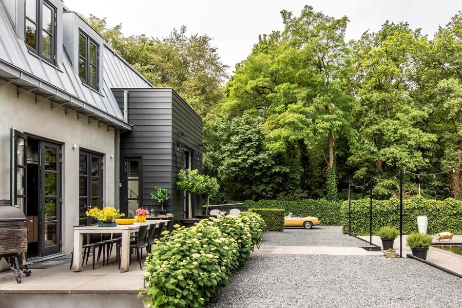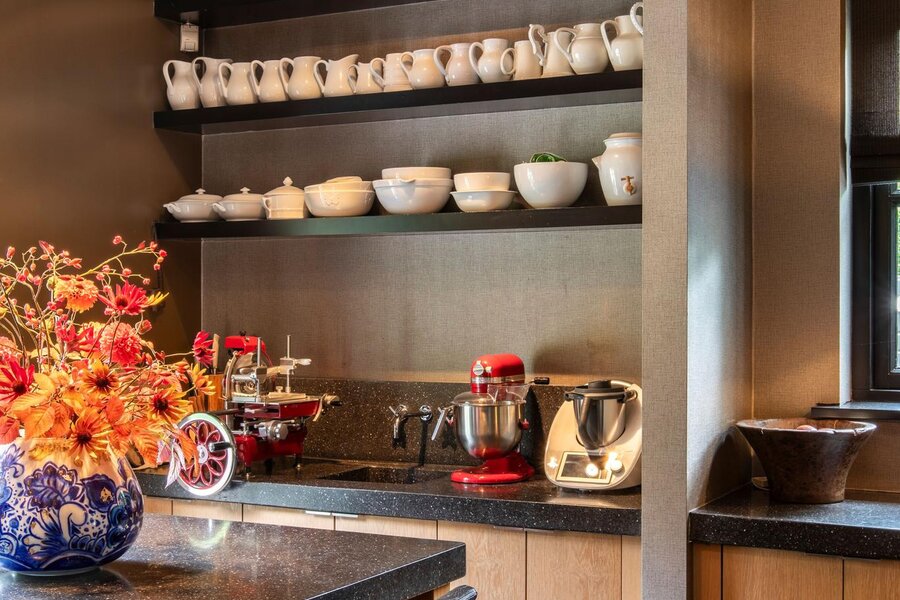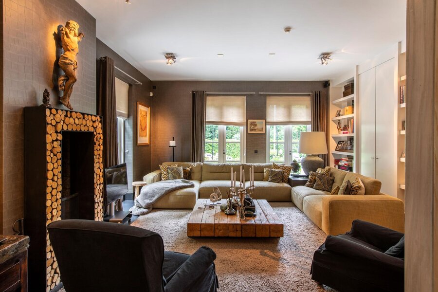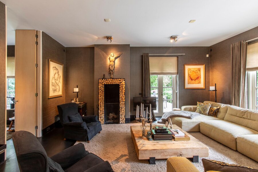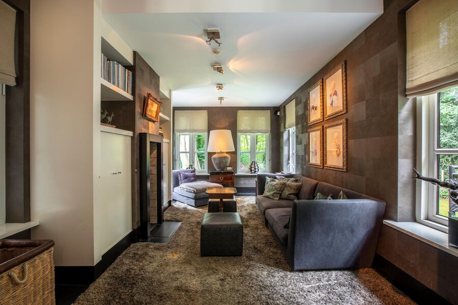 Wie aan wonen in het Gooi en in Blaricum denkt ziet mooi gerestaureerde boerderijen en rietgedekte landhuizen voor zich. Maar dat is niet het enige; de wat moderner en strakker vormgeven villa’s van recenter datum zijn ook ruim vertegenwoordigd. De villa op Heideweg 5 is er een van. En om maar meteen het vooroordeel dat modern en strak niet sfeervol zou zijn uit de wereld te helpen: modern en strak kan wel degelijk sfeervol zijn, deze villa is het bewijs. Want wat een heerlijk warm huis is dit!