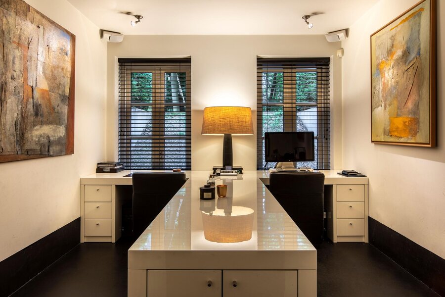 Subliem vormgegeven door de internationaal vermaarde Marcel Wolterinck die ook de vormgeving van de tuin met zwembad en poolhouse voor zijn rekening nam en er zo een fraai ’Gesamtkunstwerk’ van maakte. Wolterinck had daarbij niet alleen oog voor vormgeving maar ook voor de optimale indeling, de gebruiksmogelijkheden, wooncomfort en de details die wonen in deze villa zo vanzelfsprekend comfortabel maakt. Dit is een heerlijk familiehuis waar iedereen zijn eigen plek kan vinden en waar alle ruimte is om samen te zijn met het gezin en met familie en vrienden. Waar gewoond, geleefd en ook nog gewerkt kan worden.