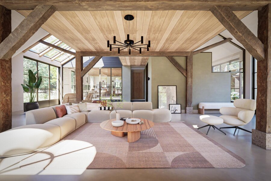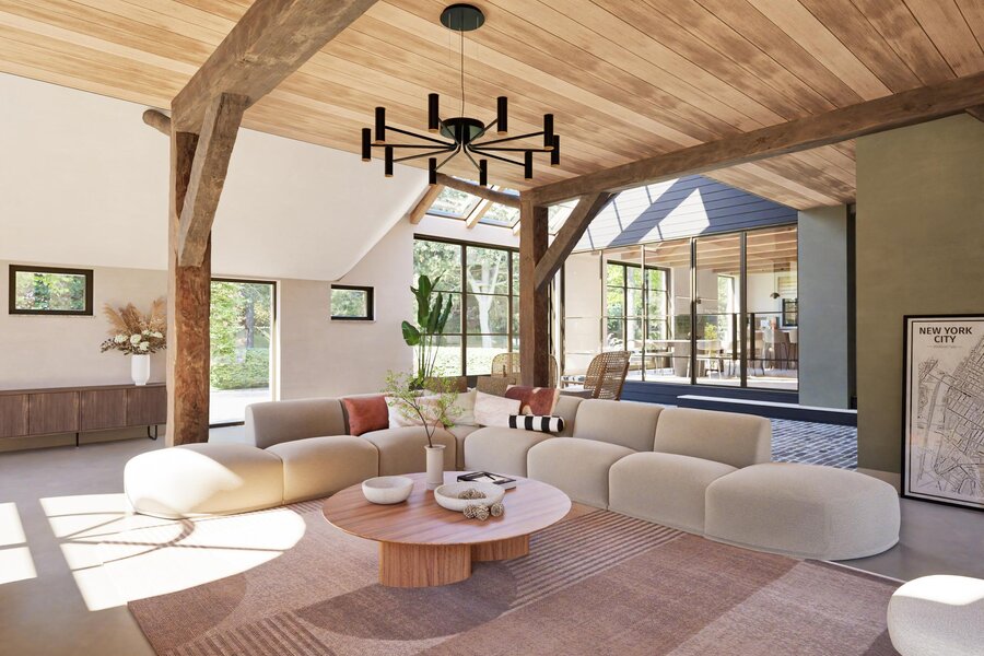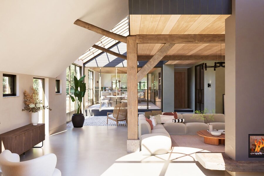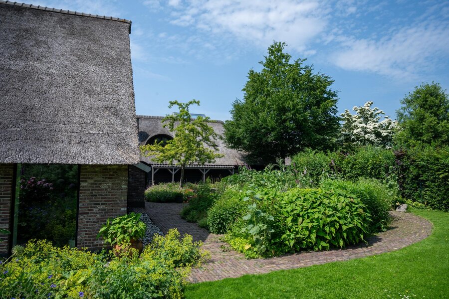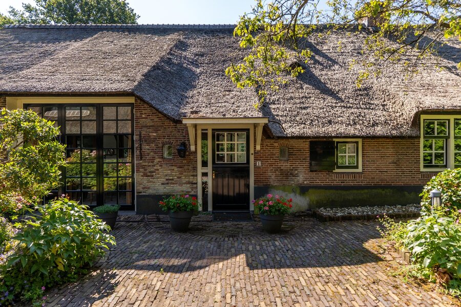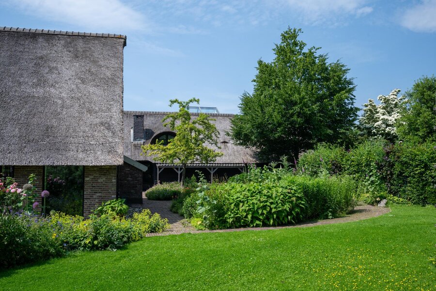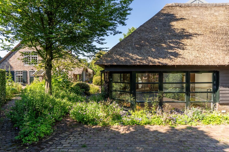 De originele woonboerderij dateert oorspronkelijk uit 1600. Het multifunctionele bijgebouw is door de huidige eigenaren, onder architectuur van de bekende Blaricumse architect Menno Ongering, in 2000 met respect voor zijn omgeving gebouwd. De rieten kap en de rabatdelen geven het geheel een gevoel van historisch besef, waardoor het perfect in de omgeving past.