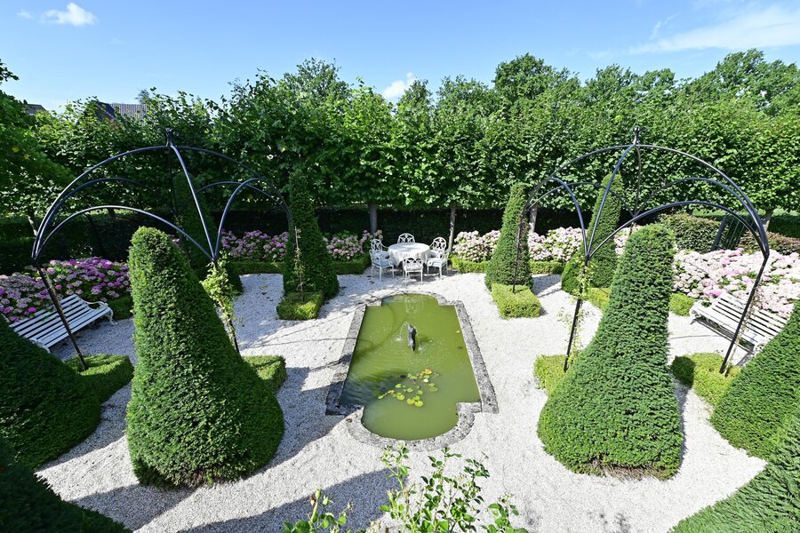 In hartje Vianen en dichtbij Utrecht biedt deze plek u alle rust en ruimte. Allereerst is er de parktuin met vijver die met zorg en liefde is ontworpen en aangelegd, en tot volle wasdom is gekomen. De grootte van de tuin (4.742 m²) creëert ongekende mogelijkheden die overigens ten volle zijn benut. Zoals de prachtige tuinkamer met overdekt terras en toilet met onder meer zicht op de tuin, het kinderspeeltuintje en de vijver met fontein. Het prieeltje met rozen, de leiperen langs de stadswal, de tuinkas en de kippenren. En last but not least het zwembad met veranda.