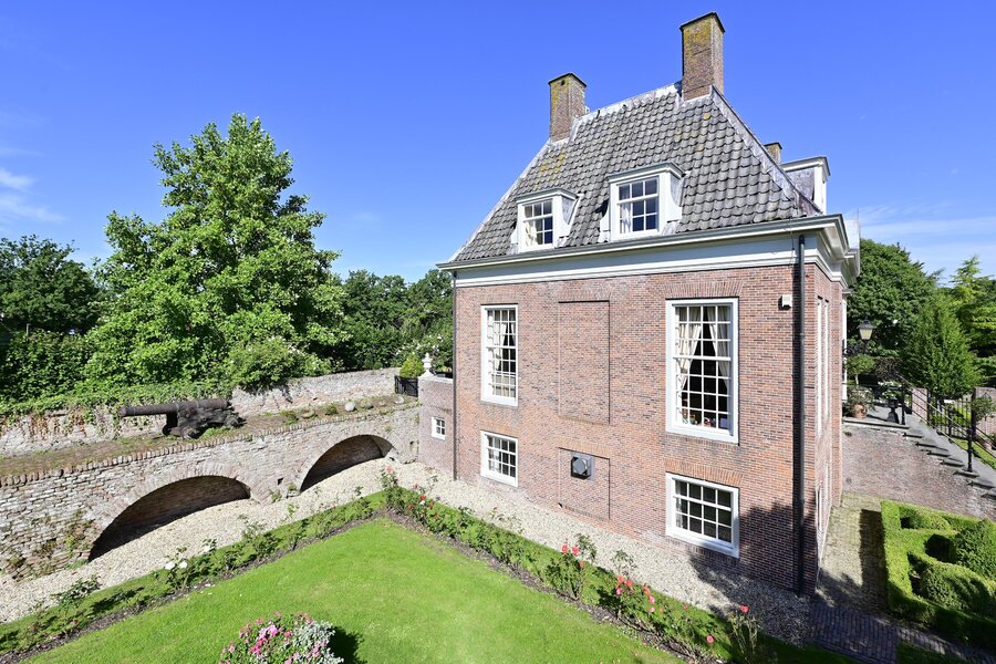 Een eeuwenoude kasteelvilla, dat doet een eerste aanblik vermoeden. Maar niets is minder waar. Deze fenomenale villa is namelijk ‘pas’ in 1969 gebouwd door een gerenommeerde bouwondernemer. Met kennis en gebruikmaking van historische bouwstijlen en bouwmaterialen realiseert hij een ronduit unieke en grootse kasteelvilla. Zijn eigen droomkasteel. Niet alleen de bouw is uitzonderlijk; hetzelfde geldt voor de locatie, binnen de vesting, tegen de eeuwenoude stadsmuren en langs de oude stadsgrachten van Vianen. En dat op slechts 18 km afstand van Utrecht. En er is nog meer waardoor deze villa het predicaat uniek en magnifiek verdient. Wandel maar eens door de geweldige parktuin die in alles de grandeur van oude adel uitademt. Maar dan wel met het comfort en de faciliteiten van nu waaronder een zwembad en tuinkamer. Een waar eldorado. Allereerst voor de bewoners, maar zeker ook voor de vogels die de tuin over de stadsmuur maar al te graag bezoeken.