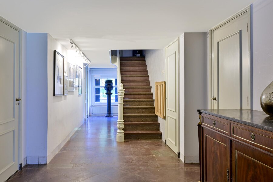 De grootse bordestrap aan de voorzijde is de veelbelovende entree van deze villa. En beloftes worden waargemaakt, dat ziet u direct als u de riante entreehal met marmeren vloer betreedt. De parterre (bel-etage) biedt ruimte aan een vijftal vertrekken met een accent op de klassieke woonkamer met prachtige raampartijen en gashaard. Eveneens fraai is de eetkamer, met daarnaast de separate keuken, met sierplafond en rijke lambrisering. Tweemaal openslaande deuren zorgen voor toegang tot een uniek terras tegen de historische stadsmuur. Het uitzicht is fenomenaal. Ook de werkkamer aan de voorzijde is een juweel en de eerste verdieping biedt alle ruimte met vijf slaapkamers en twee complete badkamers. Daarbij heeft u de beschikking over een souterrain, een complete woning met woonkamer (herenkamer), twee slaapkamers, een badkamer en diverse bergingen. Tegen de stadsmuur is daarbij op schitterende wijze een riante wijnkelder gerealiseerd die zowel vanuit het souterrain als de tuin is te bereiken.