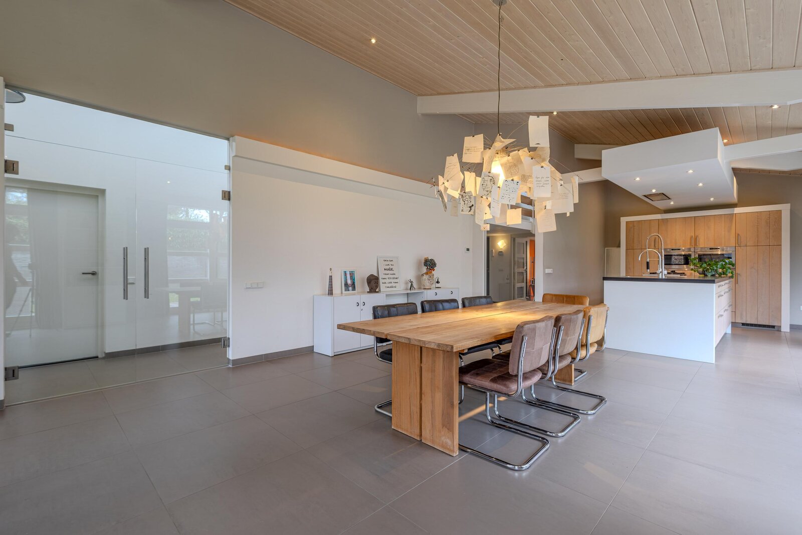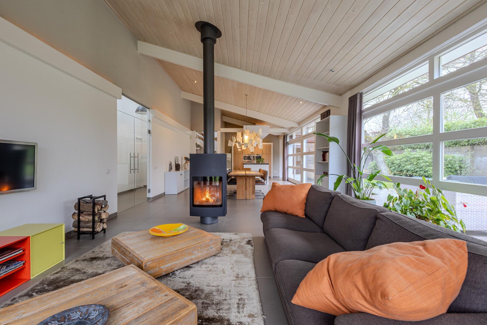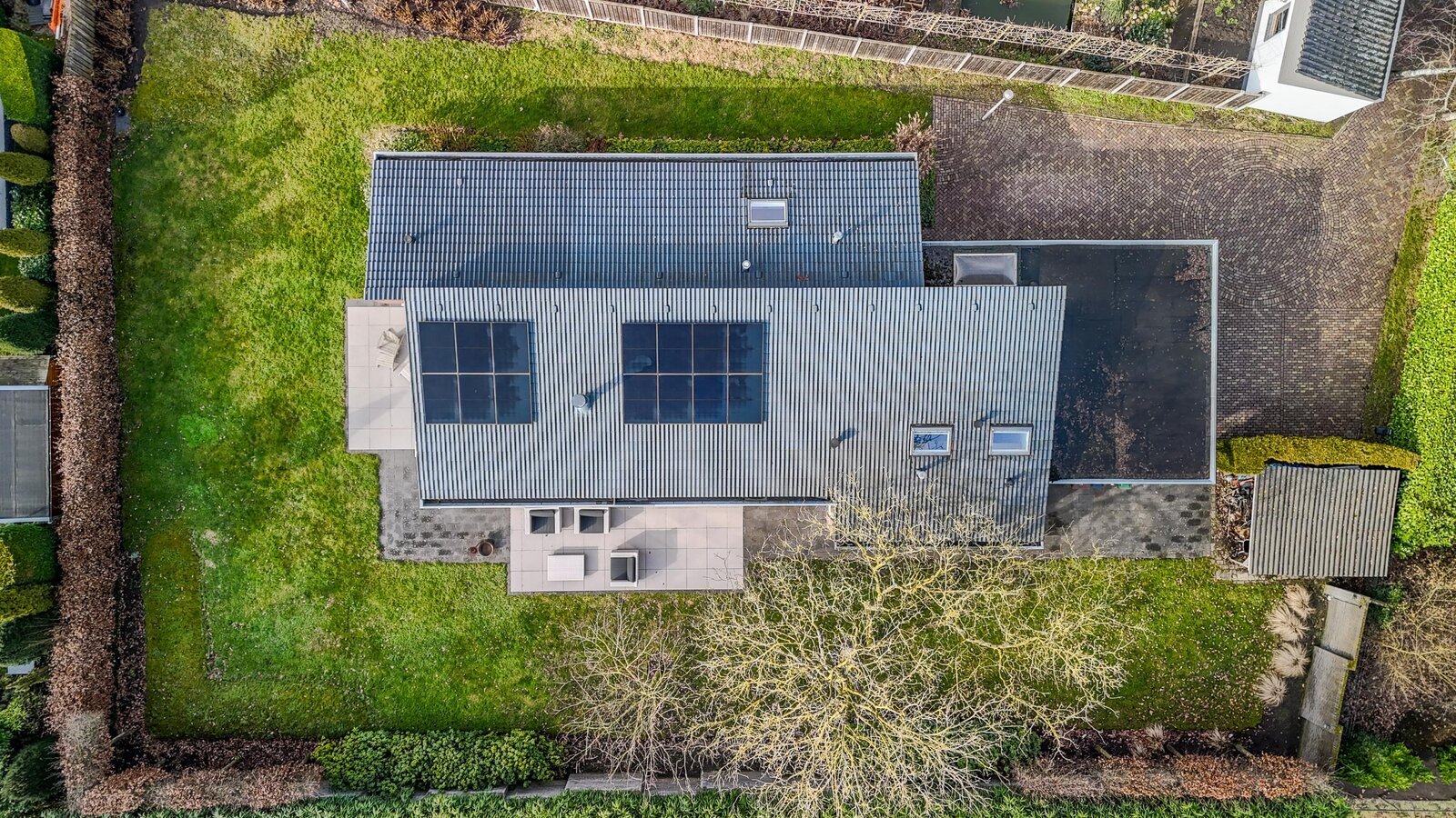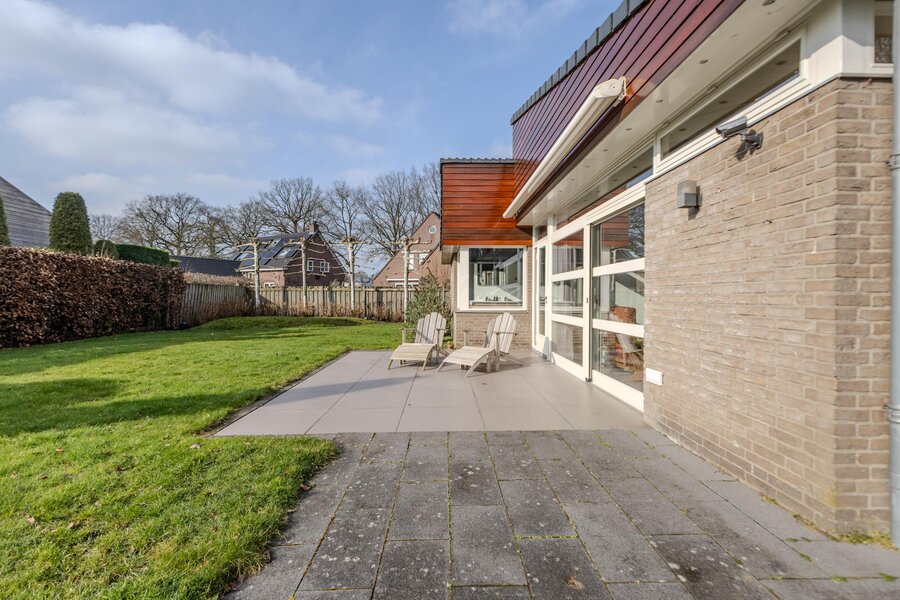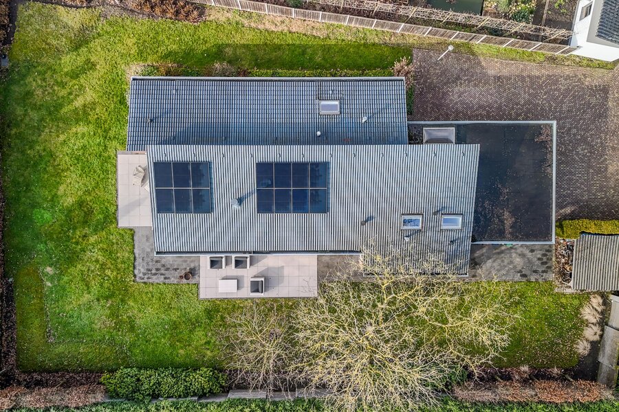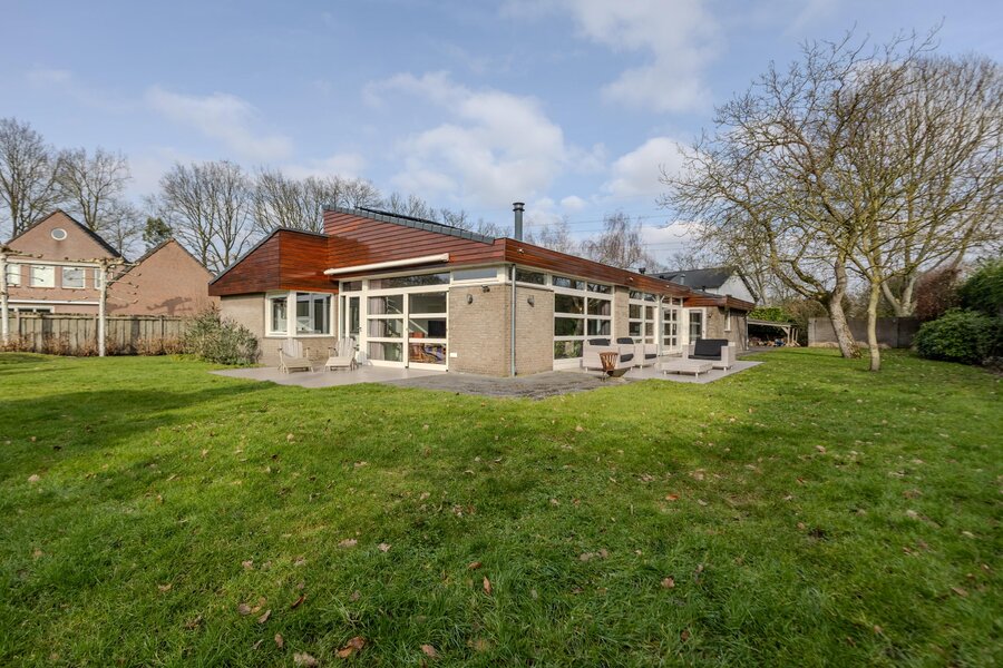 Een vrijstaande villa die direct indruk maakt door zijn ruimte, licht en bijzondere architectuur. De ligging aan een eigen toegangsweg met (elektrische) toegangspoort garandeert privacy vanaf het eerste moment. Het hoge, schuin oplopende plafond van het lessenaar dak, het royale woonoppervlak en de praktische indeling maken dit een woning met uitzonderlijk veel mogelijkheden. Met onder meer een riante living met sfeervolle houthaard, een woonkeuken, vier slaapkamers, twee badkamers en diverse multifunctionele ruimtes op de begane grond is deze woning uitermate geschikt voor wie royaal wil wonen en de mogelijkheid wil hebben tot werken aan huis. Buiten geniet u van een zonnige tuin rondom, twee terrassen, een oprit voor meerdere auto’s en volop privacy.