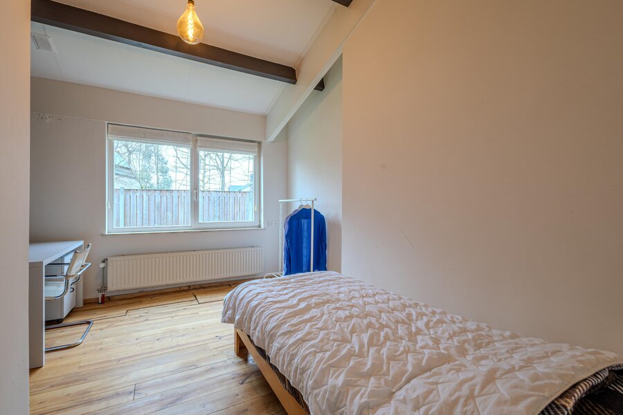 Op deze verdieping is aansluitend aan de overloop nog een vierde slaapkamer te vinden. Deze kamer is van een prettig formaat met voldoende ruimte voor een tweepersoonsbed.