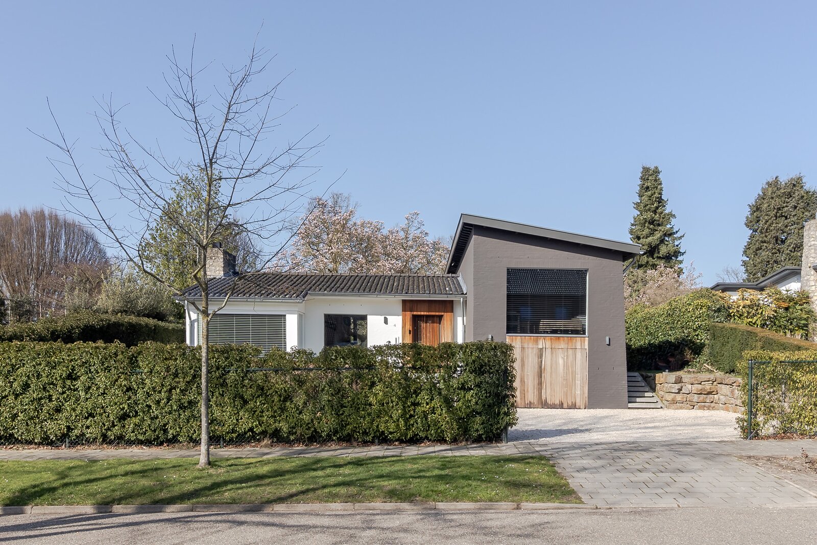 De woning dateert oorspronkelijk uit 1954 en is in 2015 volledig en hoogwaardig verbouwd. De uitstraling van de woning spreekt voor zich. De combinatie van wit geschilderd metselwerk, een donker geveldeel met een grote raampartij en warme houten accenten bij de entree zorgt voor een stijlvolle uitstraling. De verhoogde ligging met natuurstenen terrassen en brede trappen geeft de woning een statige entree, ruimte en privacy. Het toegepaste lichtplan zorgt voor een optimale sfeer, warmte en ruimtelijkheid, ook in de avonduren.