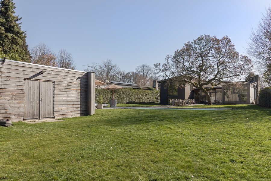 De woning is gelegen op een royaal perceel van 1.379 m² en beschikt over een fraai aangelegde tuin met veel privacy, meerdere terrassen en een ruim (verwarmd) buitenzwembad. Binnen en buiten lopen naadloos in elkaar over dankzij de grote raampartijen en de directe verbinding met het terras en de tuin. Dit huis biedt comfort en een echte vakantiebeleving.